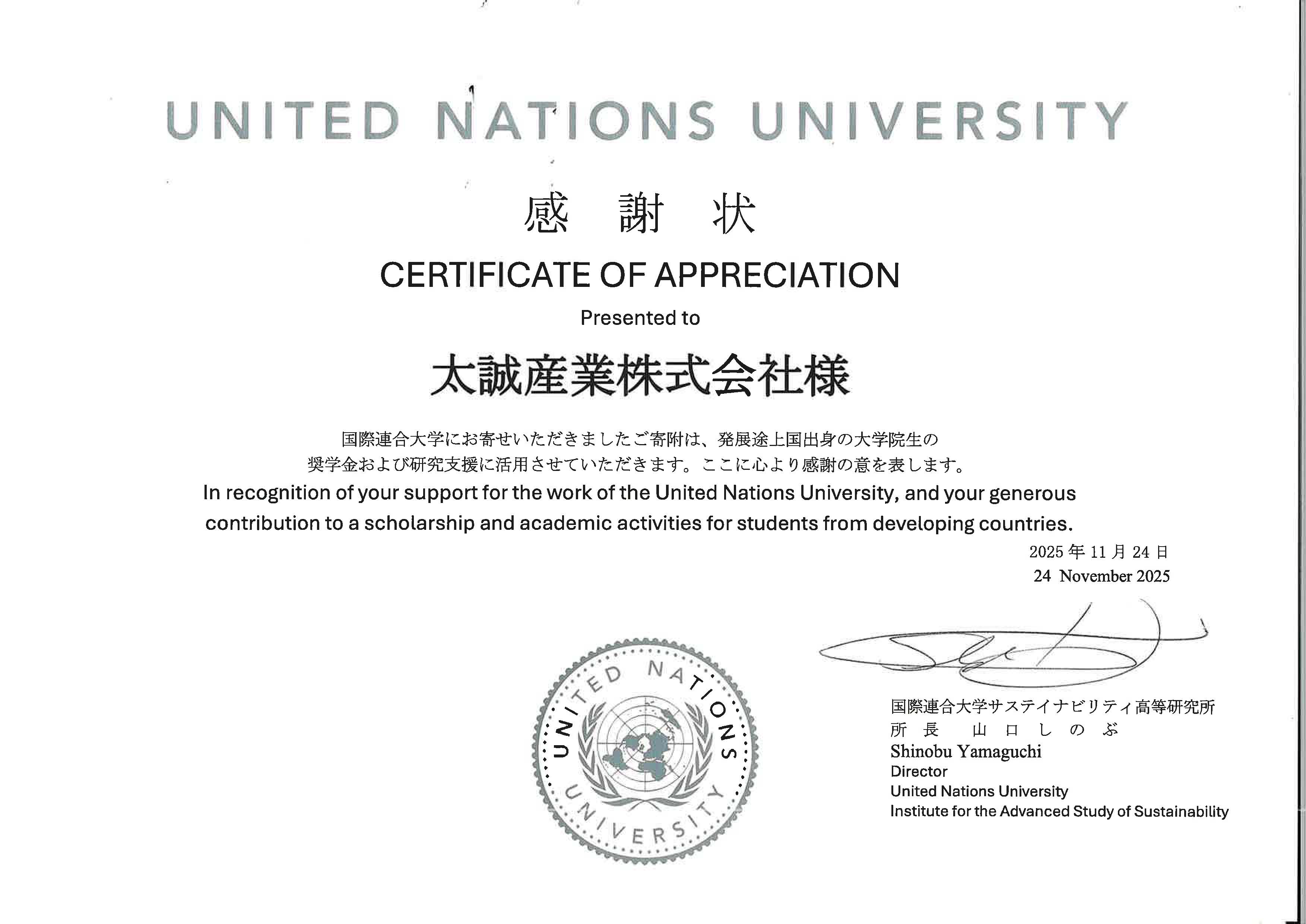 | 会社商号 | 太誠産業株式会社 |