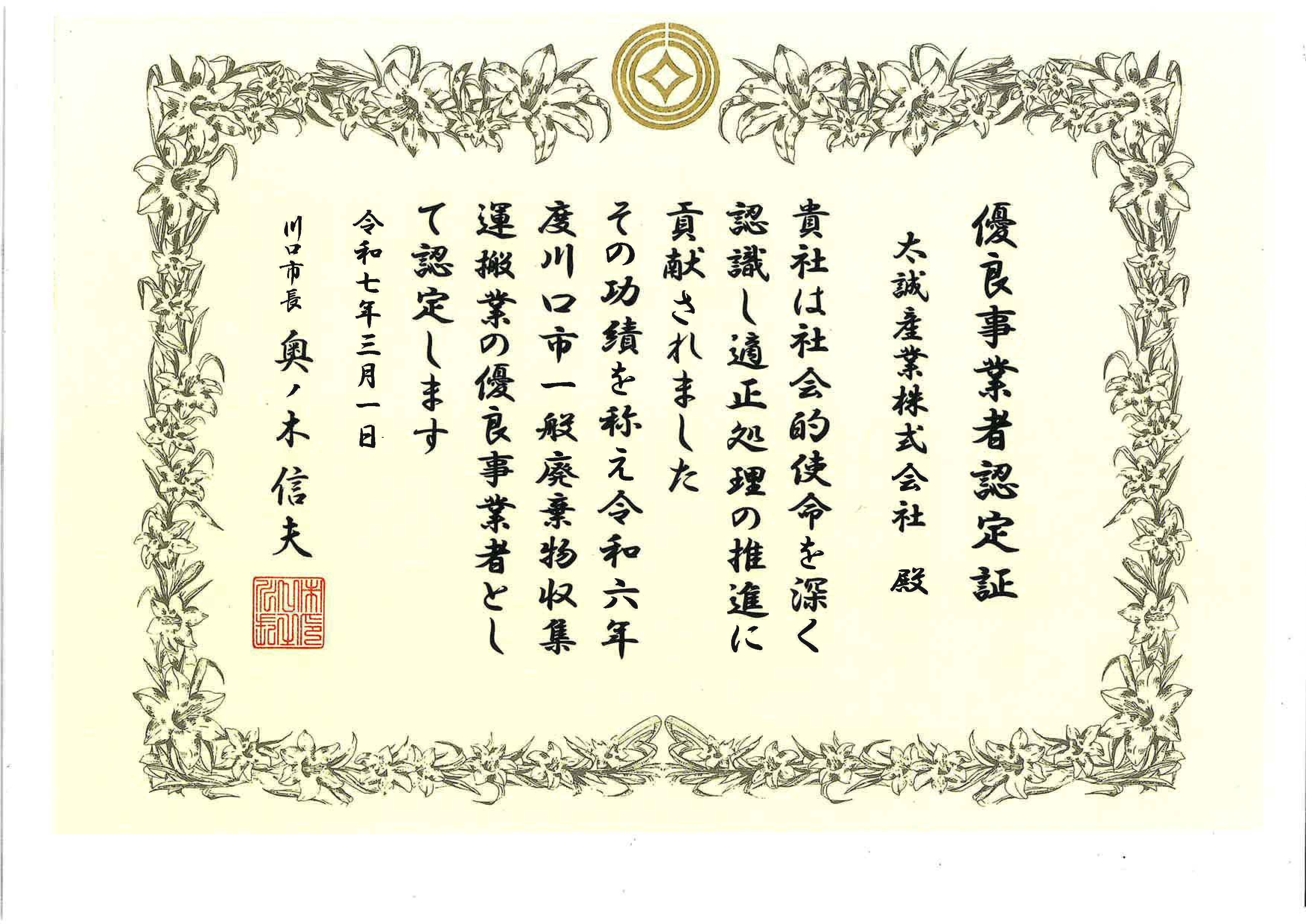 | 会社商号 | 太誠産業株式会社 |